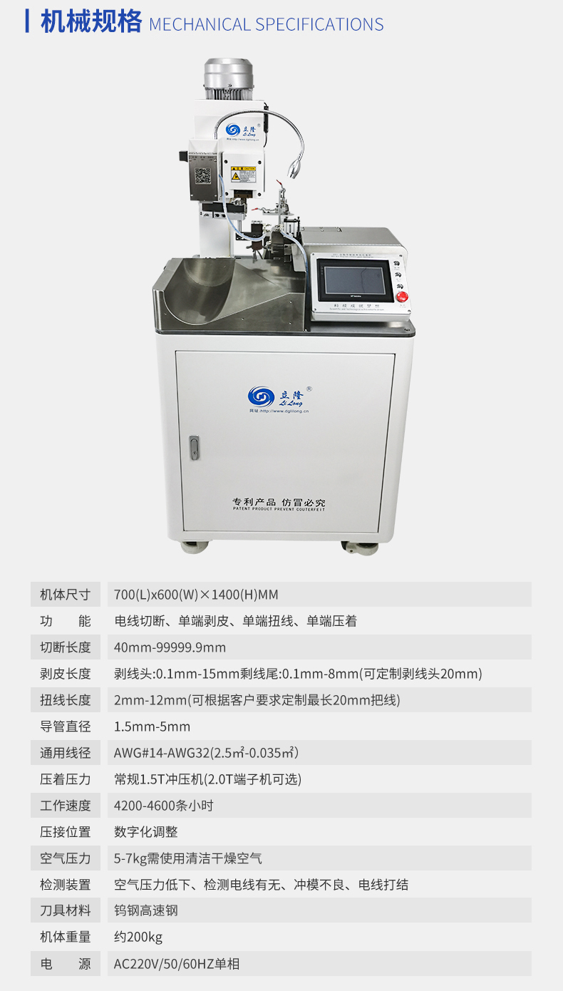 LL-551/551+T(帶扭線)全數(shù)字智能單端壓著機(jī) 產(chǎn)品說(shuō)明: 1.精巧,緊湊的設(shè)計(jì),極佳人性化設(shè)計(jì),占地面積小。 2.數(shù)字智能觸摸屏和按鍵中文操作菜單易學(xué)易用。 3.可儲(chǔ)存100套加工程序,更換工序和材料...